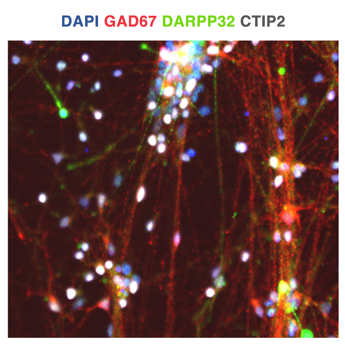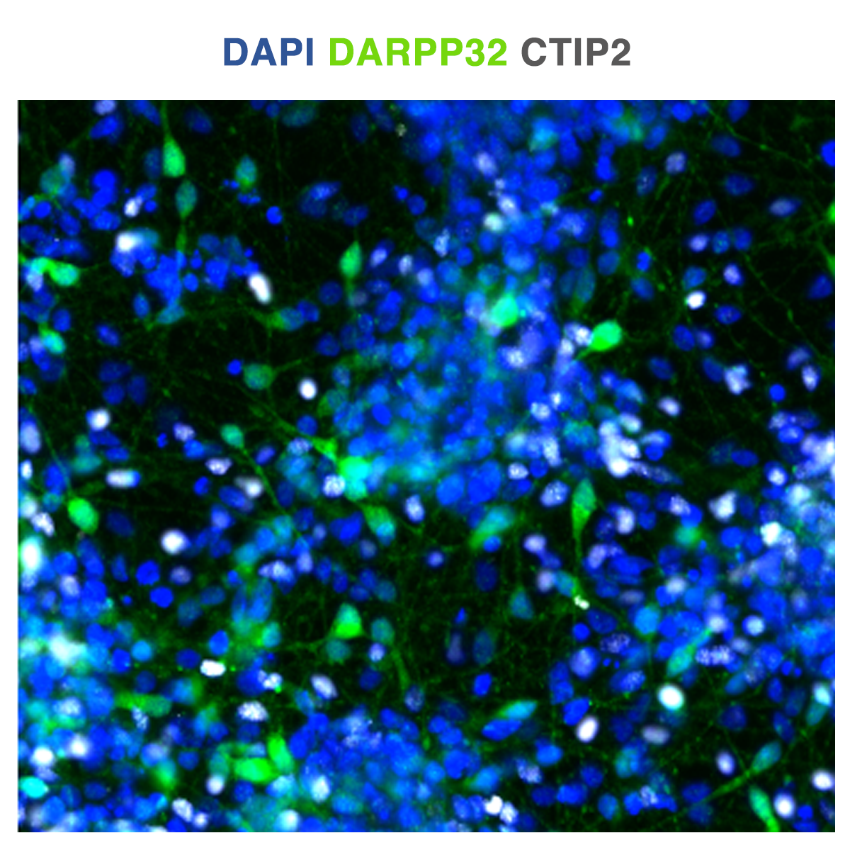 Upon arrival, the cells were inspected using conventional brightfield microscopy and immediately lifted off the plates to generate a single cell suspension ready for transplantation in the animals. A subset of the cells was analysed by immunocytochemistry staining for markers characteristic of striatal projection neurons. Dopamine- and cAMP-regulated neuronal phosphoprotein (DARPP-32); B-cell lymphoma/ leukaemia 11B (CTIP2); Microtubule-associated protein 2 (MAP2). The transplantation in the animals was successful and subsequent analysis will follow.