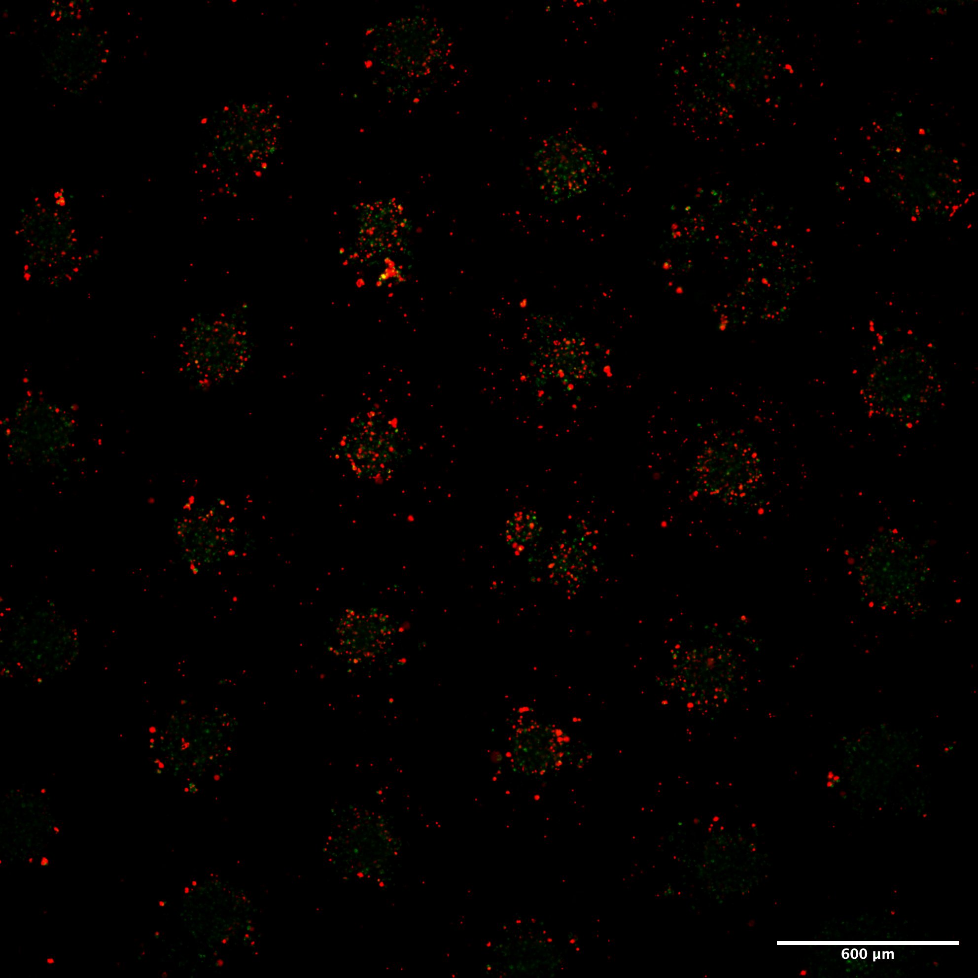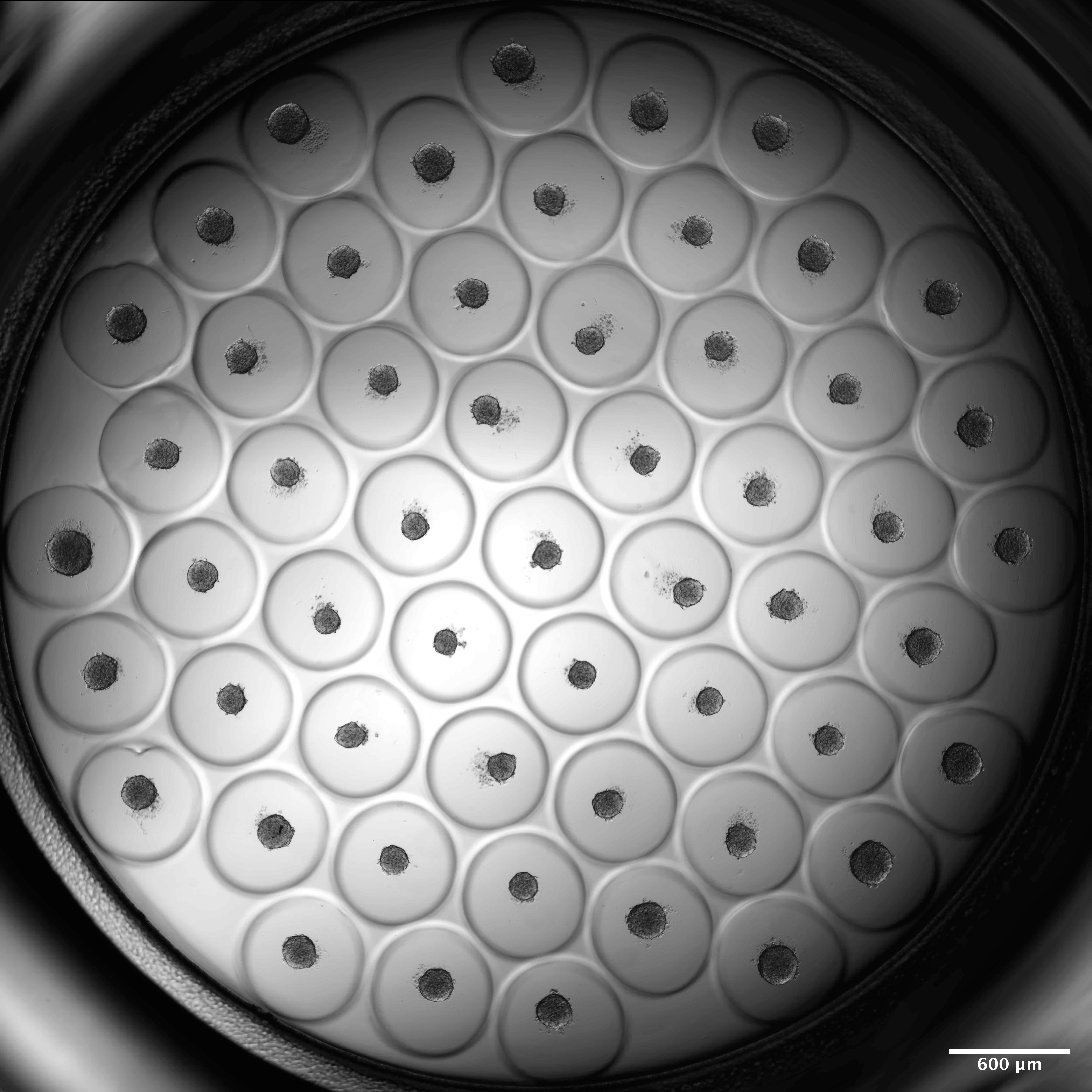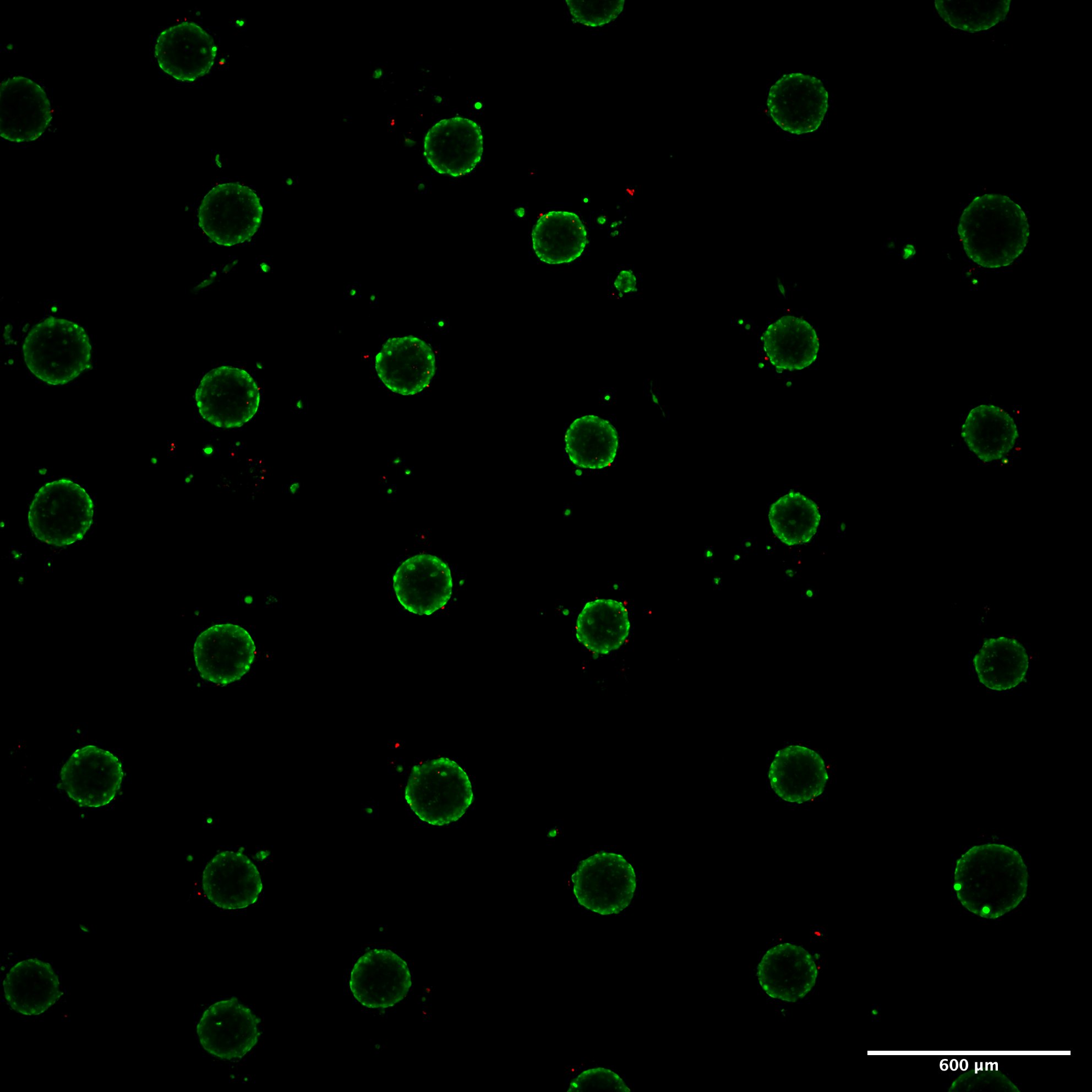 Prior to the experiment, viability was calculated to be at 90%, further confirming the stability of the cultures during transport. Sarcoma 3D cultures were then seeded as single cells on Gri3D® 96-well imaging bottom 600 μm microwell plates with 55 microcavities per well. Cells aggregated homogenously and formed spheroids that were ready for compound exposure and toxicity assessment using a Live/Dead assay.