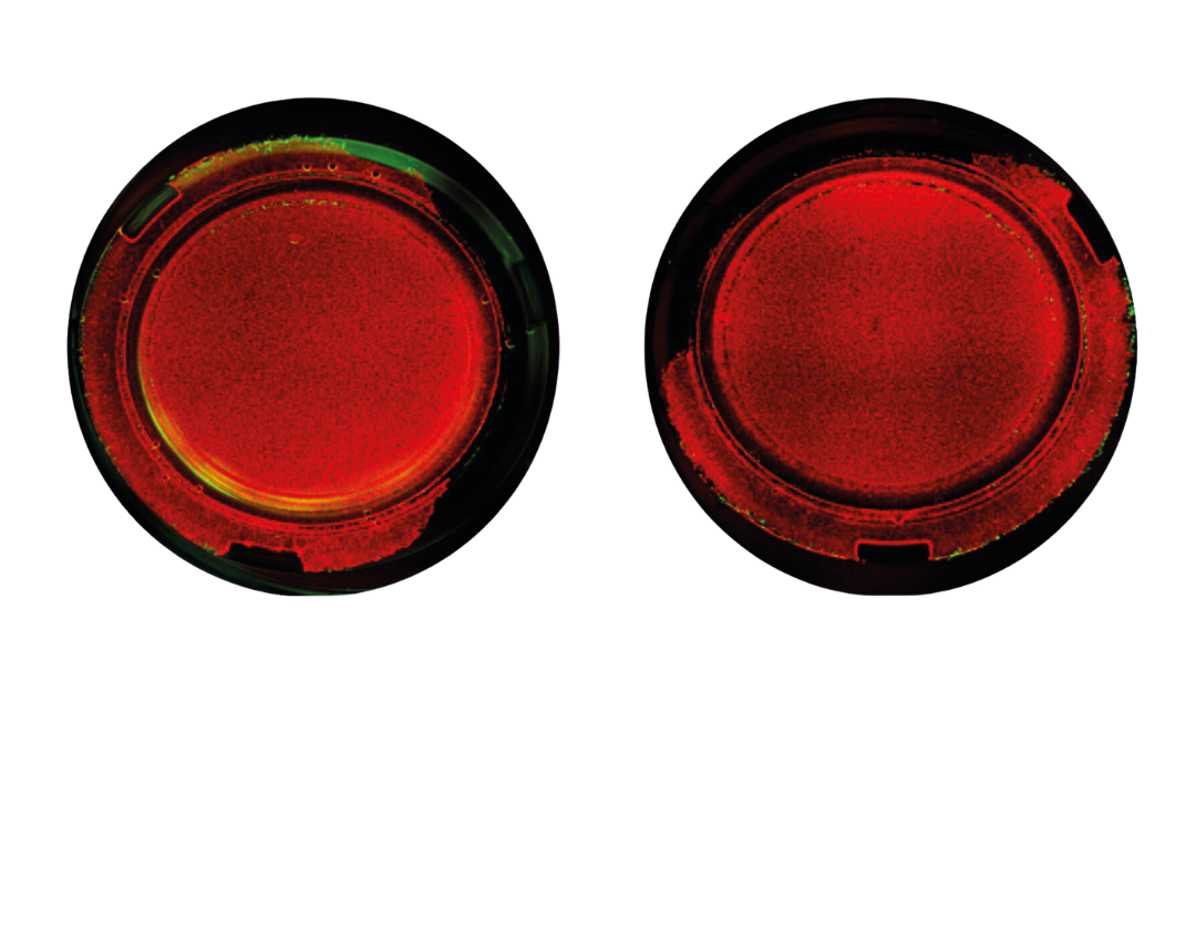 Prior to the shipment, TissUse evaluated the quality of the BBB model by performing TEER measurements, a permeation assay and live/ dead staining. The permeation assay evaluates how well the tight junctions between the cells are by using the fluorescent 4kd-dextran and sodium fluorescence. Live/dead staining was done with Calcein Red-Orange AM and CellTox Green.